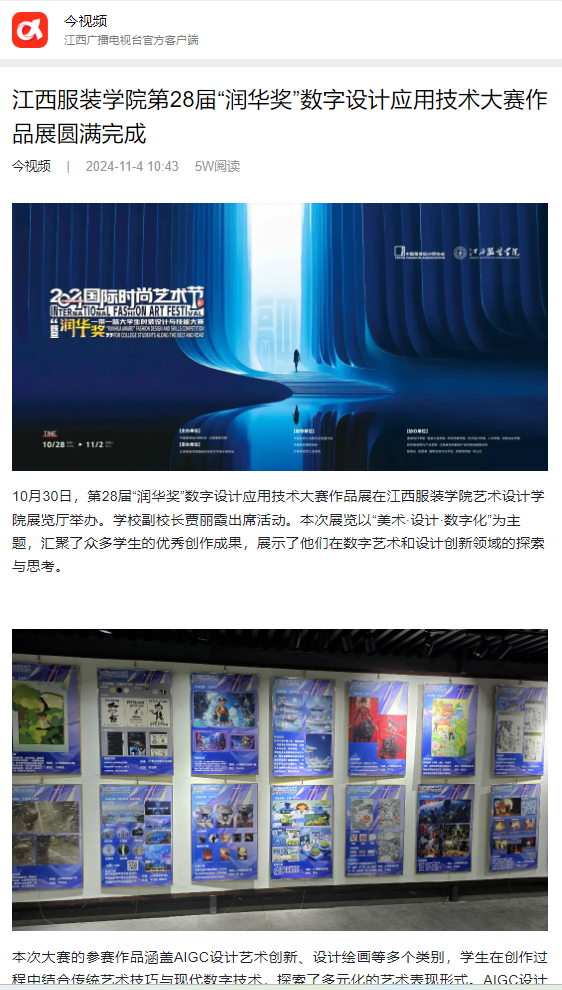 江西广播电视台今视频:万象城平台第28届“润华奖”数字设计应用技术大赛作品展圆满完成
