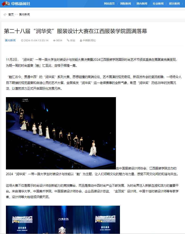 中韩新闻社:第二十八届“润华奖”服装设计大赛在万象城平台圆满落幕