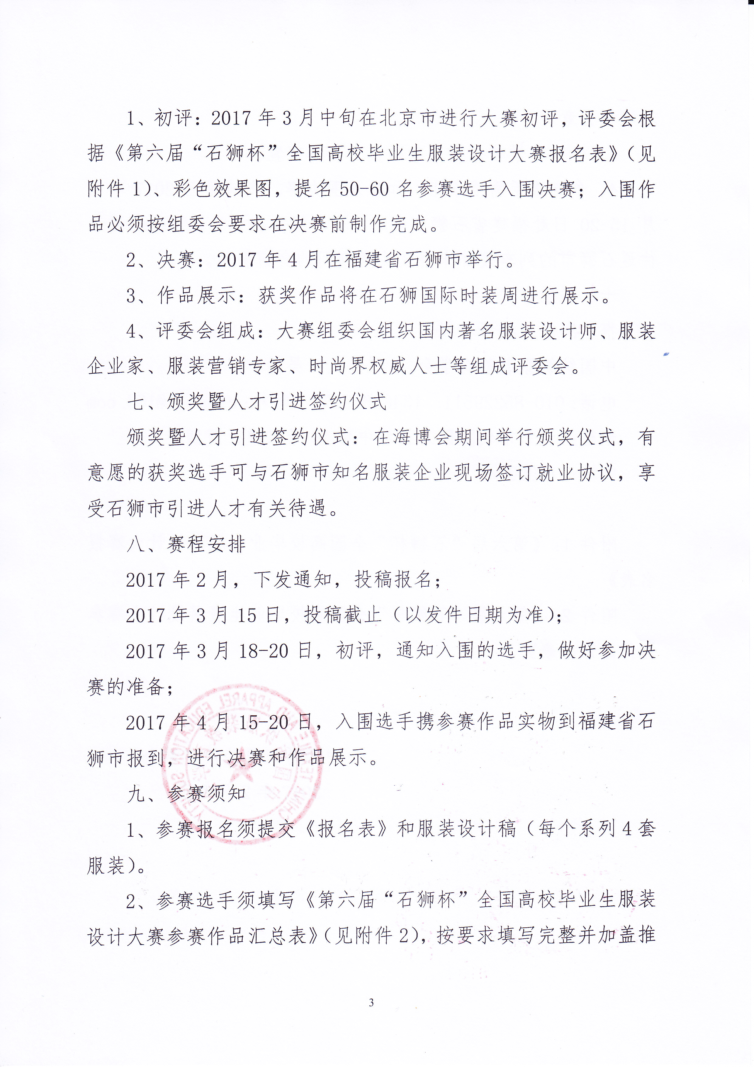 关于参加第六届 “石狮杯”全国毕业生服装设计大赛的通知