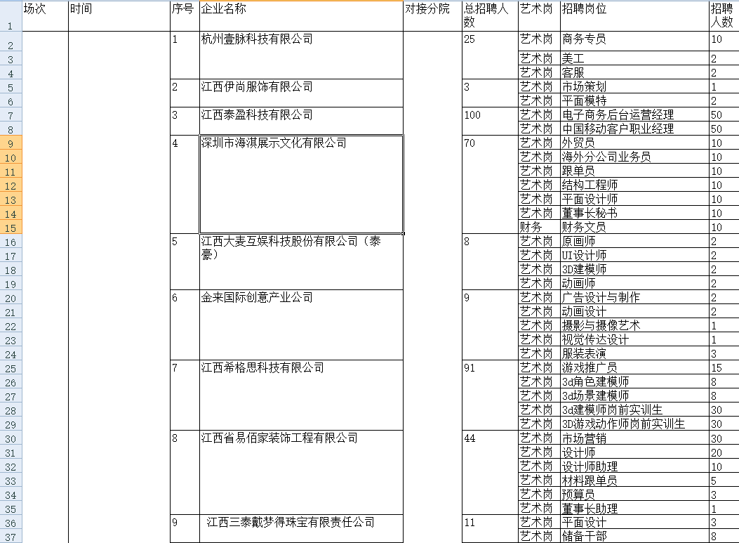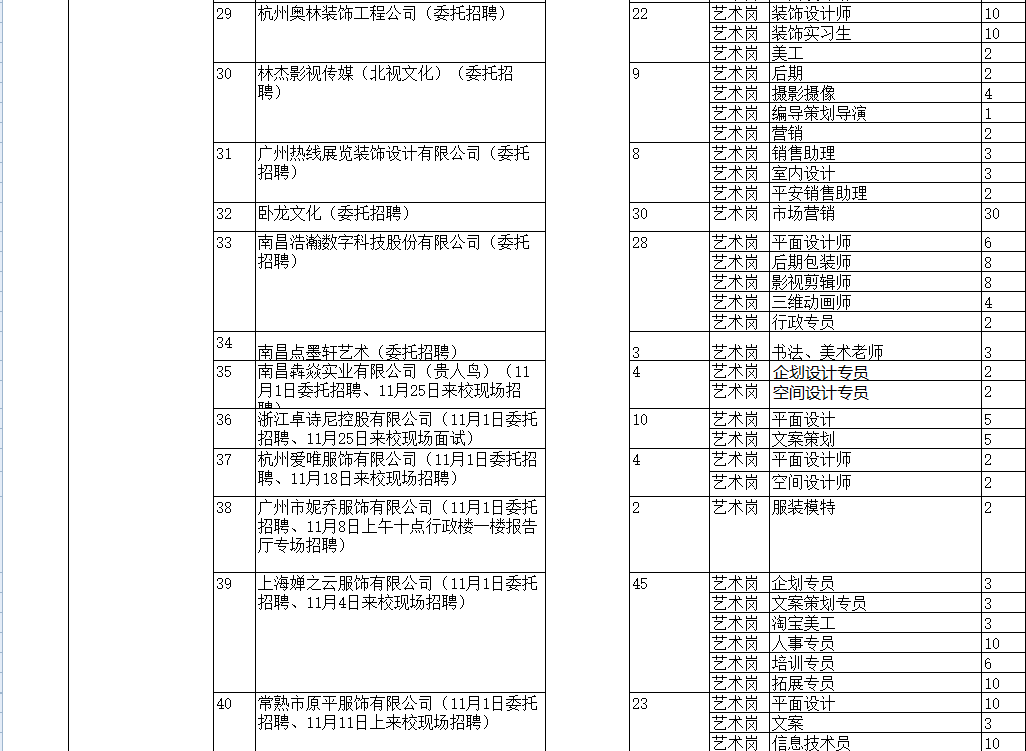 2016年11月1日招聘会安排