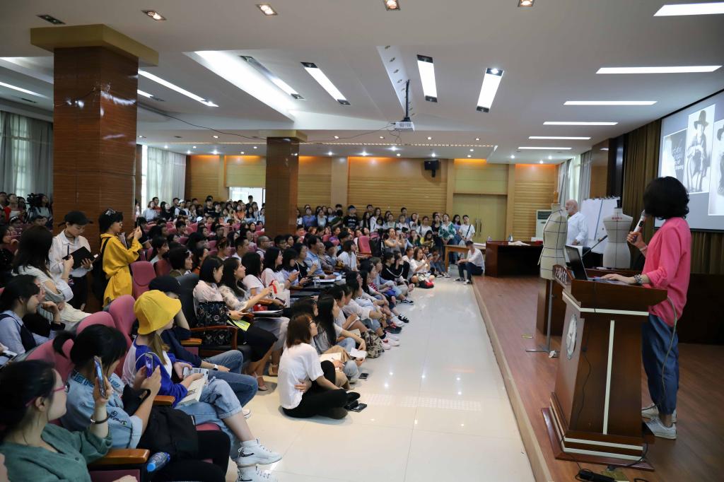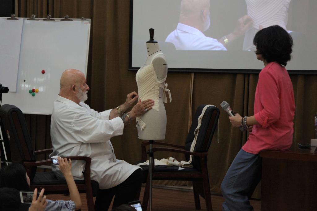 在场的师生被Nils Christian所制作的木乃伊褶皱立体裁剪所深深吸引,在他现场示范完木乃伊褶皱立体裁剪后,台下的掌声不断。Nils Christian大师的现场立裁教学,让同学们受益匪浅,学到的不仅仅木乃伊褶皱立体裁剪的制作过程,也更深层次认识到礼服设计的褶皱之美,认识到立体裁剪的精确美感。