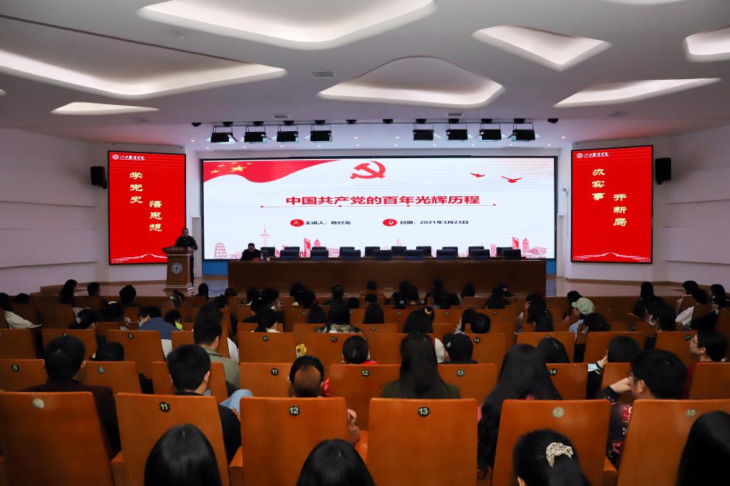 新闻中心讯(图/文 万强) 为贯彻落实习近平总书记在党史学习教育动员大会上的重要讲话精神,引领广大师生学史明理、学史增信、学史崇德、学史力行,以奋进姿态开启2021年春季学期新征程,以优异成绩迎接建党100周年,3月23日下午,校党委书记陈付龙在思贤楼三楼报告厅作了“党史学习教育”专题报告会。
