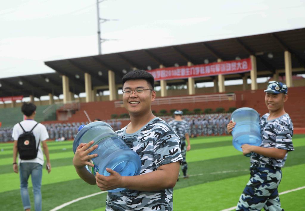 补充水分是军训过程中最重要的事情之一,商学院训练营的两名男生顶着烈日扛着两大桶水穿过半个校园回到连队,却没有丝毫抱怨,脸上洋溢着灿烂的笑容。