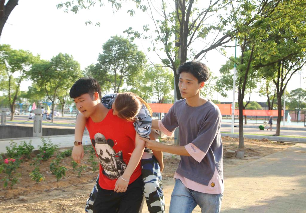南昌的夏天酷暑难耐,在高温的炙烤下一名女生倒下了,正在在球场打球的学长见状马上一个背一个扶,小步快跑,迅速将晕倒的女生送去医务室。