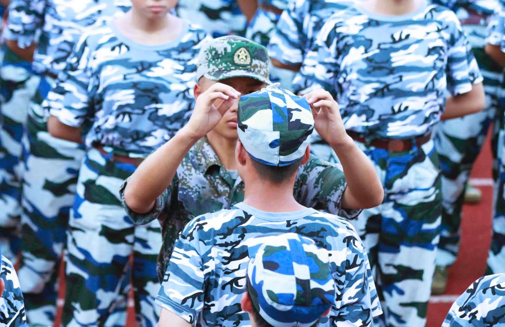 训练时一丝不苟的教官也会亲自替学员整理帽子,规范军姿。他们认真的样子让棱角分明的脸上多了一丝温柔。这些微小的关心不时的溢进学员们的心坎里,让学员对教官除了敬畏又多了一份亲切。
