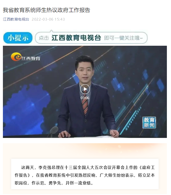江西教育电视台:我省教育系统师生热议政府工作报告