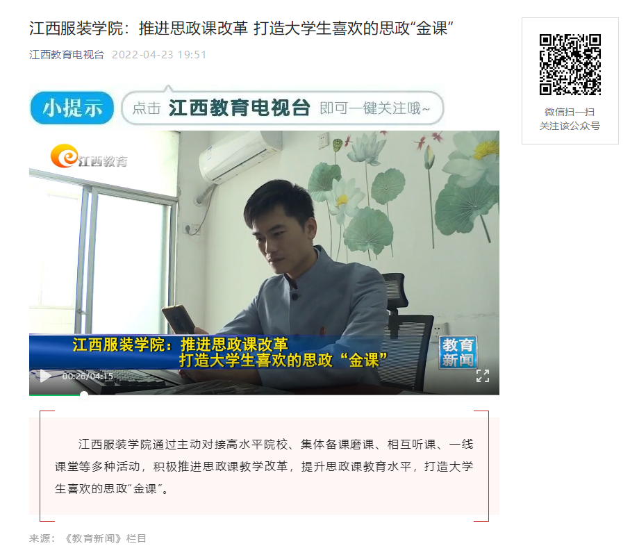 江西教育电视台:万象城平台:推进思政课改革 打造大学生喜欢的思政“金课”