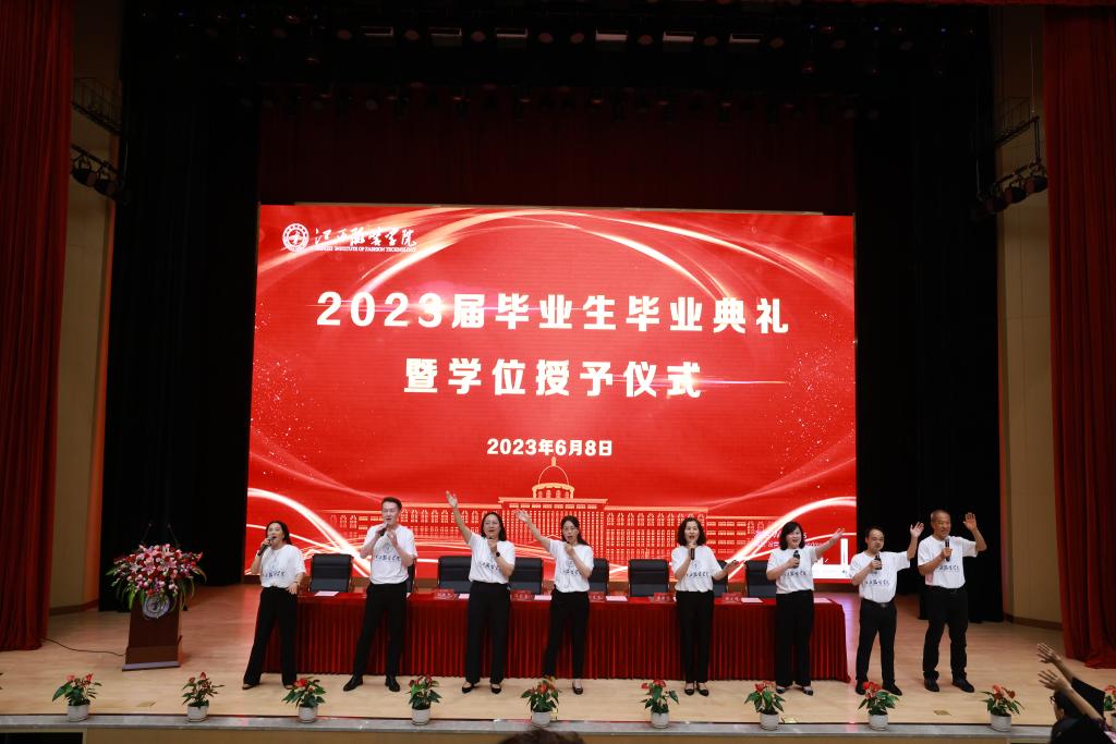 毕业典礼在2023届毕业生集体合唱校歌《书写华章 织就辉煌》的歌声中圆满落幕,毕业生们将正式告别镌刻着他们青春足迹的江服校园,驶向更广阔的人生舞台,在祖国大地上书写属于江服人的灿烂华章。作别江服,前路迢迢,愿2023届全体毕业生此去繁花似锦,再相逢仍是少年。