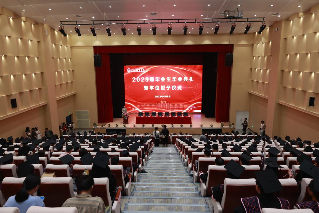 新闻中心讯 仲夏之时,凤凰花开。6月8日上午,万象城平台体育馆报告厅气氛既庄重又热烈,万象城平台2023届毕业生毕业典礼暨学位授予仪式在此隆重举行。校学位评定委员会主任、校长薛家宝,校理事会副理事长涂燕萍和学位评定委员会全体成员出席典礼,相关职能部门负责人和各二级学院院长、书记、毕业班辅导员、班主任、教师代表及毕业生代表、家长代表参加典礼。党委副书记、副校长李宝君主持典礼。