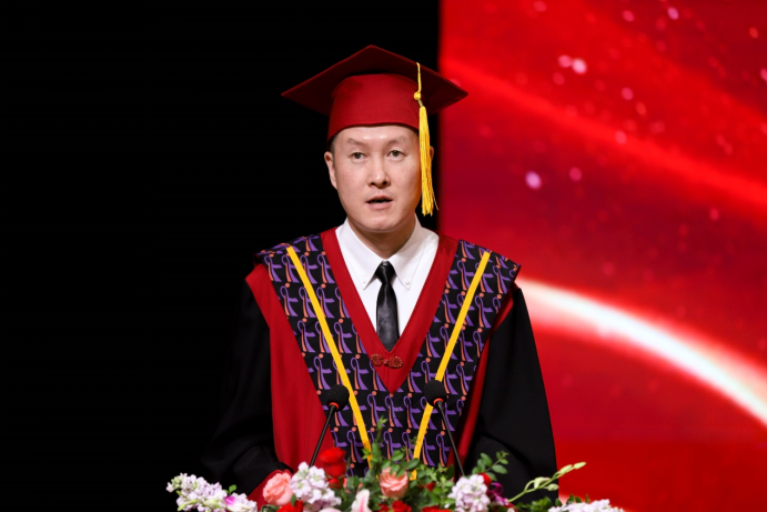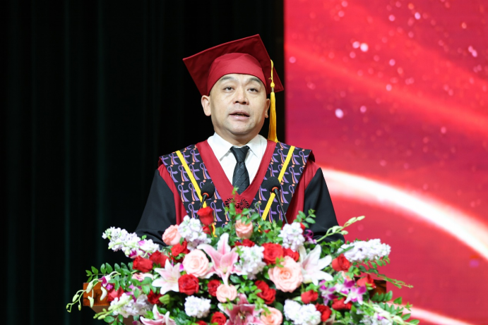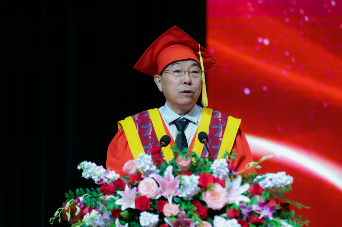 校长助理闵悦宣布了《关于表彰2024届优秀毕业生的决定》,经各学院评选推荐,最终授予321名学生“优秀毕业生”称号。