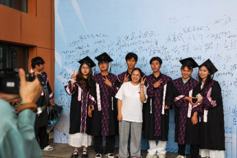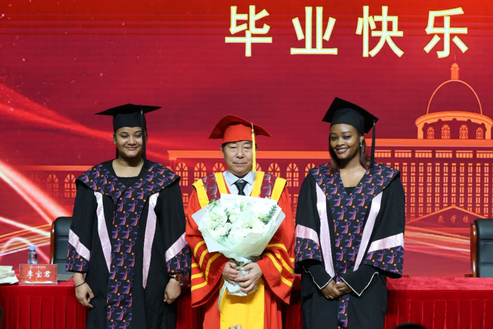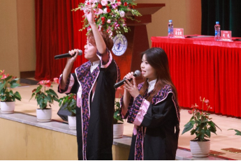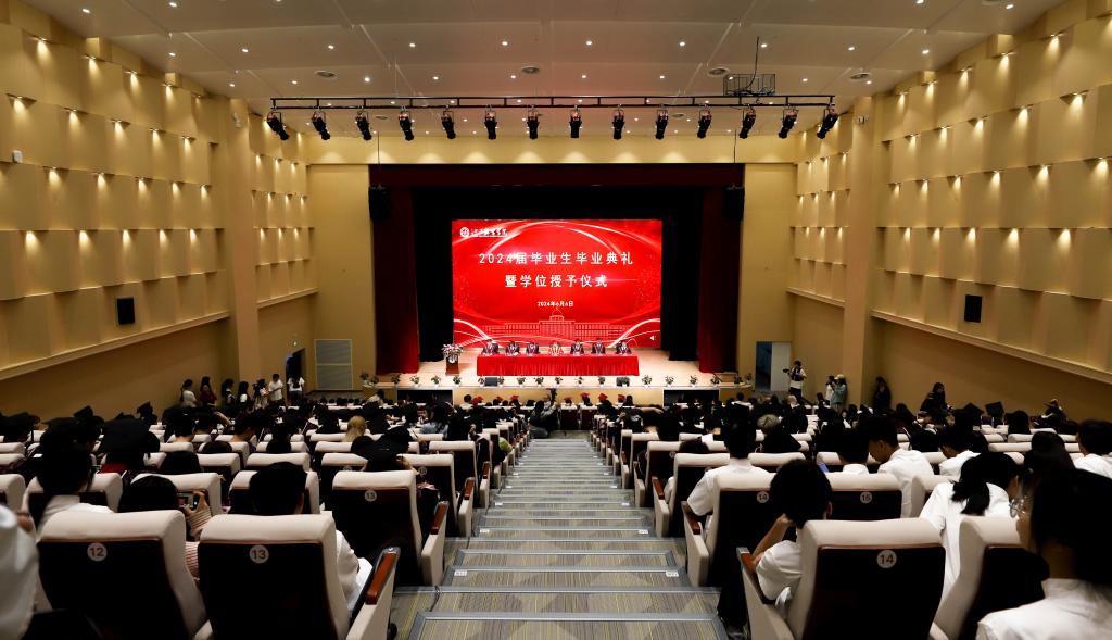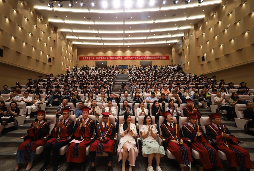 “别害怕现在的离别啊,微笑着挥挥手说再见吧,明天就等在下一个路口……”典礼正式开始前,各学院院长和毕业生演唱了《启程》《不说再见》《你曾是少年》《知足》《明天你好》等暖场歌曲。现场大屏幕播放了学校精心制作的毕业纪念片,温馨感人的画面和寄语,带领同学们重拾美好的校园时光。