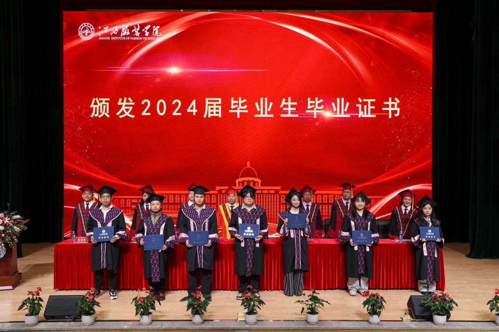 “赣水之畔,名郡豫章,绛帐高张,青衿满堂。一笔一画绘版样,千针万线织霓裳。缝绣镶缀注真情,冠履章服润华邦。艺之隽才,雅集一方,美之基因,靓我服装……”典礼最后,与会师生齐声合唱江服校歌,在一片优美激昂的歌声中,毕业典礼圆满结束。2024届毕业生们将正式告别镌刻着他们青春足迹的江服校园,驶向更广阔的人生舞台,在祖国大地上书写属于江服人的灿烂华章。