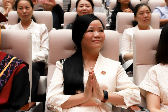 “看到你们从懵懵懂懂到如今的自信从容,作为老师由衷地感到欣慰和自豪。”教师代表、服装设计学院院长张宁与同学们分享了学习和生活感悟,寄语同学们要始终保持对知识的热爱和追求,永远保持学习的状态,永远跟上时代的步伐;同时拥有坚定的信念和执着的精神,相信“保剑锋冲磨砺出,梅花香自苦寒来”;并且永怀感恩之心,带着感恩之心去工作生活,收获更多的幸福快乐。最后,真心祝愿大家的未来如星辰般璀璨,如大海般辽阔。在人生的道路上,高歌前行,勤信博雅;书写华章,织就辉煌!