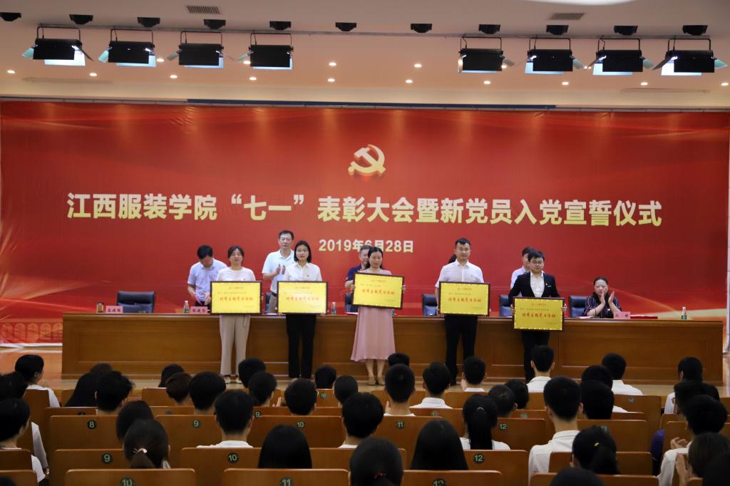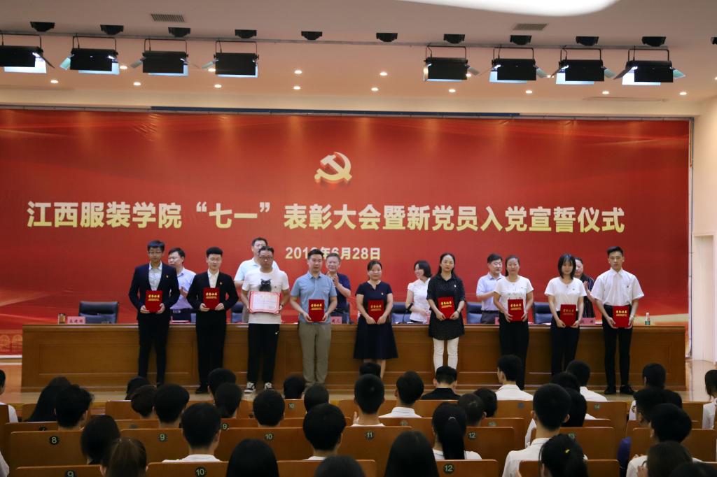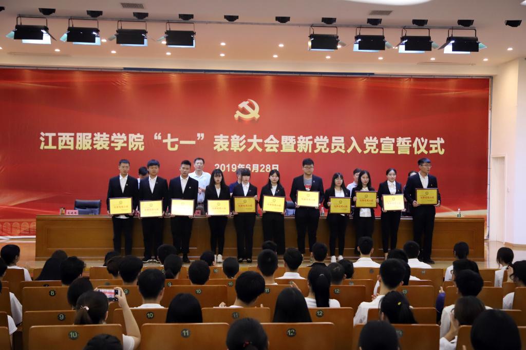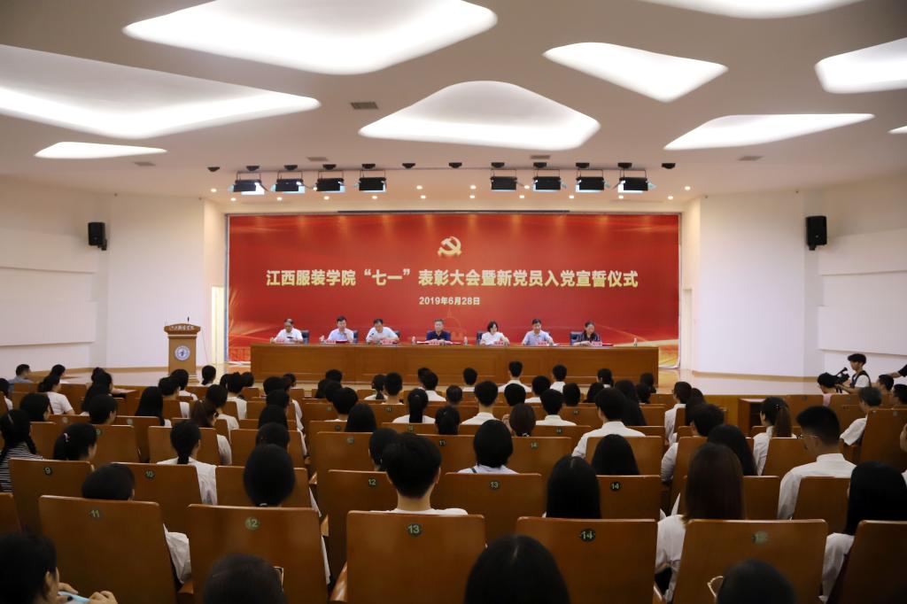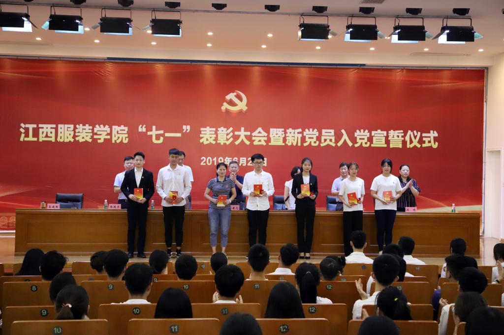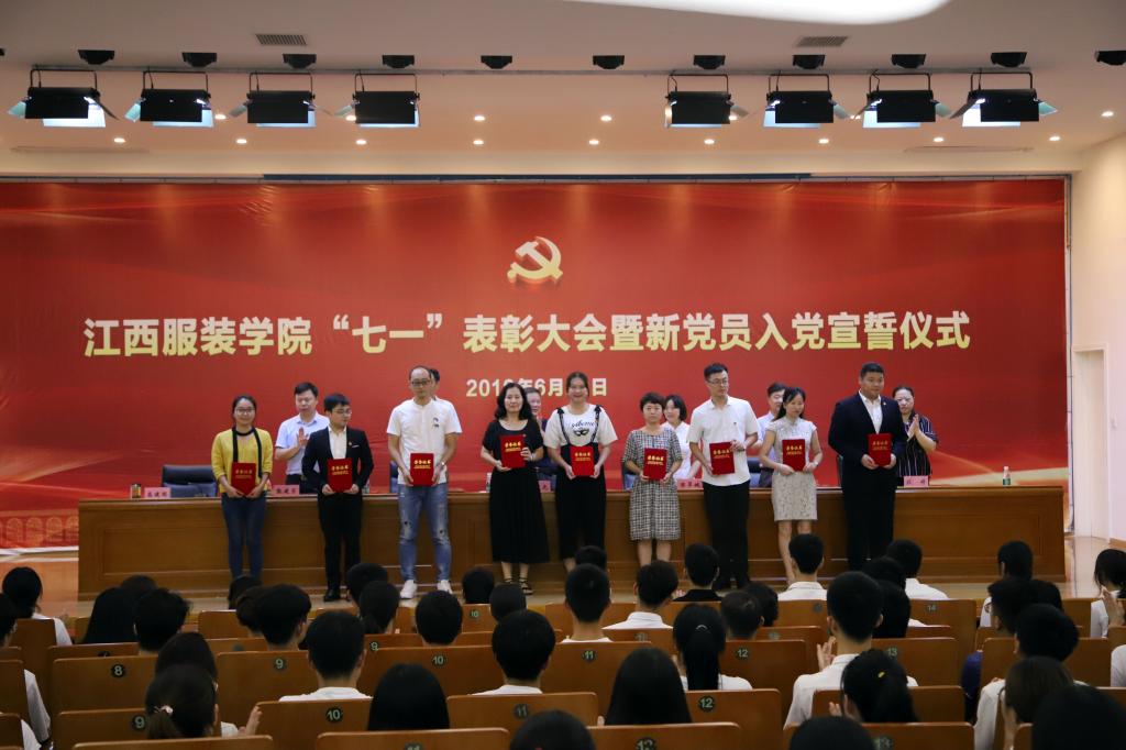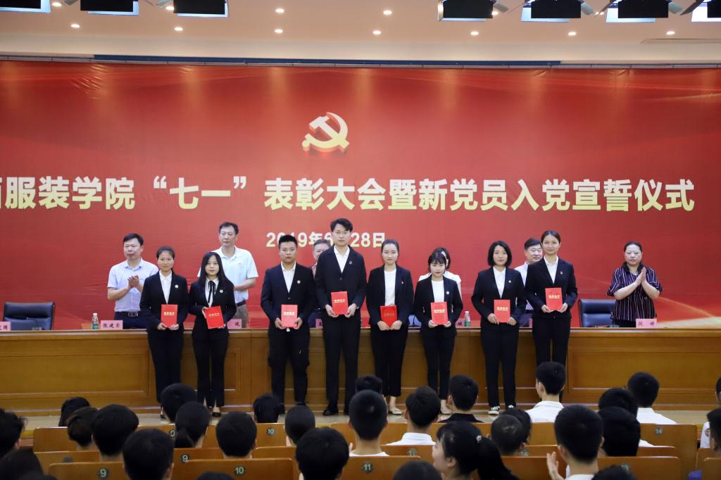服装报讯(图/文 万强) 6月28日下午,在中国共产党成立98周年之际,我校在思贤楼报告厅隆重举行“七一”表彰大会暨新党员入党宣誓仪式。省政府督导专员、校党委书记王建元,党委委员、组织部部长陈翠娥,党委委员、宣传部部长彭波,党委委员、学生工作部部长、校党建联合会常务副主任张建荣,党委委员、人事处处长郭鹏升,党委委员、教务处处长段婷出席大会。各党总支、各支部的书记、副书记和委员,受表彰的先进集体代表和优秀个人,部分党员和入党积极分子代表,参加宣誓的新党员参加会议。大会由校党委副书记高建国主持。