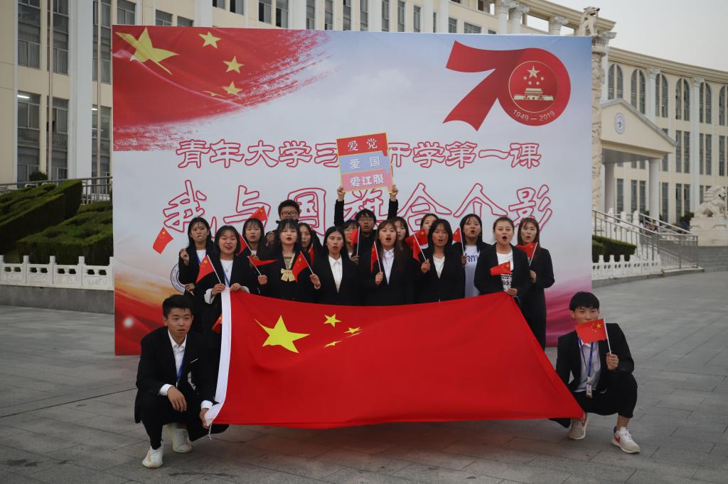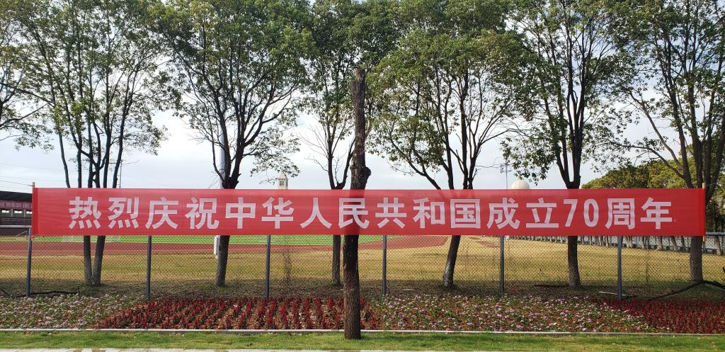 学校大门、主教学楼广场安装上“庆祝新中国成立70周年”“与国旗合影”大型桁架,供师生们留言和留影,不时可见一群群朝气蓬勃、兴高采烈的学生自发集中一起,手牵手与国旗拍照留影,以这种同学们非常喜爱的方式喜迎中华人民共和国成立70周年,表达此时此刻与共和国同呼吸共命运的喜悦、激动的心情。