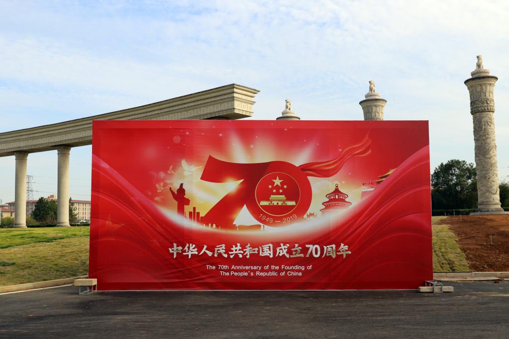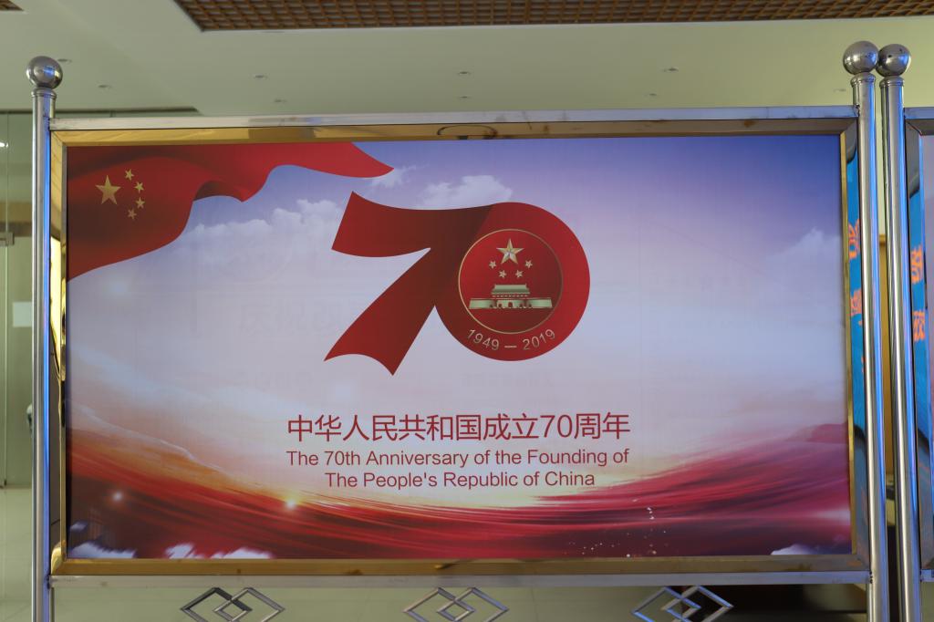 校内各宣传橱窗、广告灯箱展示了中华人民共和国70年辉煌成就,“不忘初心、牢记使命”主题教育标语,教学楼、班级教室、学生公寓楼内等公共场所,随处可见主题为“喜迎国庆”“庆祝70年华诞”的黑板报和宣传画。