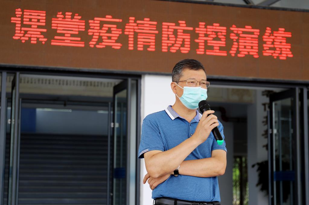 新闻中心讯 为做好学生返校闭环管理,切实提高学校应对疫情突发情况快速反应、规范处置、联防联控的能力,做到校园疫情防控“早发现、早报告、早隔离、早诊断、早治疗”,切实保障广大师生身体健康和生命安全,充分做好开学准备和开学后疫情防控工作,根据上级教育主管部门和属地疫情防控指挥部部署要求,学校新型冠状病毒感染的肺炎疫情防控工作领导小组于5月9日上午举行了2020年春季学期学生返校学习疫情防控演练。学校领导班子全体成员到场观摩指导,各职能部门负责人、各学院教学负责人及党总支(副)书记、辅导员等现场观摩了演练。常务副校长徐炜组织演练。