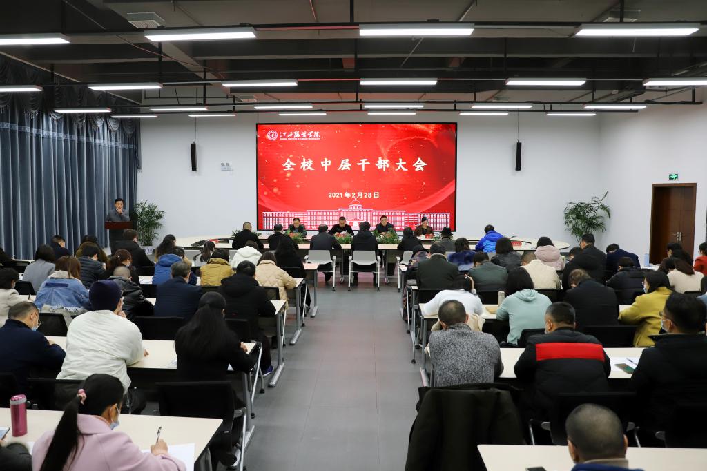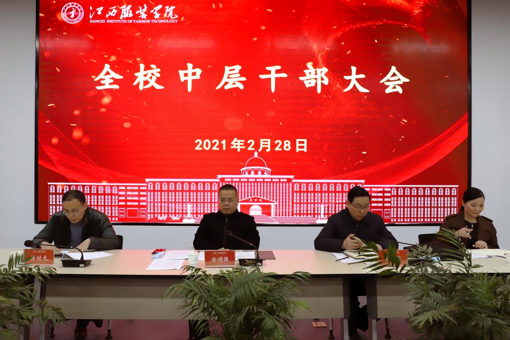 新闻中心讯(文/明海 摄影/万强)2月28日,我校召开中层干部会议,宣布校领导任职决定,并就2021年学校党政工作要点进行解读。理事长涂顺强、校长薛家宝、党委书记陈付龙、副理事长涂燕萍及校领导班子出席会议,全体中层干部参加会议。会议由常务副校长徐炜主持。