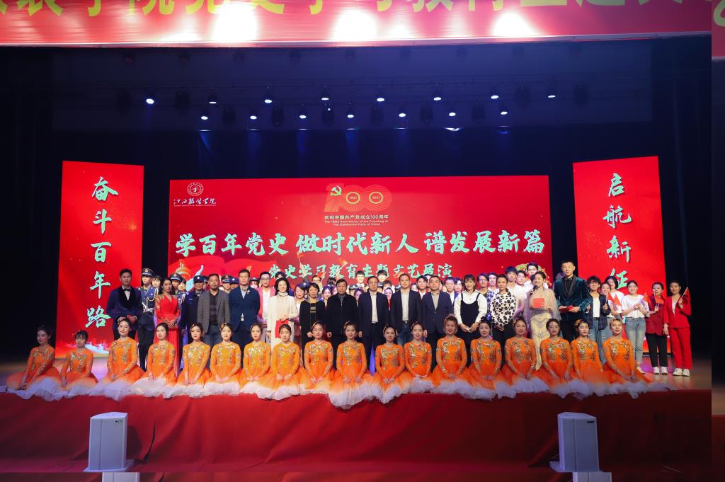 本次文艺展演紧紧围绕“向中国共产党成立100周年献礼”这个主题,在节目元素和宣传氛围中均融合了“学史明理、学史增信、学史崇德、学史力行”内涵,唱响“感党恩,听党话,跟党走”主旋律。展演分为“信念”“奋斗”“初心”三个篇章。展演在歌舞《唱支山歌给党听》中拉开帷幕。歌曲《星辰大海》与合唱《走向复兴》再现了中国共产党人拼搏奋斗的精神;舞蹈《青禾》展现了当代大学生的蓬勃朝气和对祖国的未来的美好憧憬;故事分享《江服青年》,展现了江服师生与全国人民“共同抗疫、爱国力行”的奋进力量和教学战线上教师为党育人、为国育才的江服精神;在宿管和保安的伴舞下,一曲《少年》将展演带入了一个高潮,激励大家以积极的状态面对生活,迎接挑战;风采展示《光荣梦想》,舞蹈《盛开》,朗诵歌舞剧《大地赞歌》等与情节相融的节目表演,激昂的旋律与优美的舞姿相得益彰,通过短片形式,把中国军人的精气神、党带领中国人民走向辉煌的感人故事和高尚情怀,精彩而生动地呈现在观众面前。歌舞《灯火里的中国》将活动推向最高潮。整场展演将党史学习教育融入节目演出中,形式新颖、精彩纷呈、感人至深,每一个文艺节目,都是一次生动的宣讲,激励全校师生不忘初心、牢记使命,学党史、悟思想、办实事、开新局,以昂扬姿态奋力开启全面建设社会主义现代化国家新征程,以优异成绩迎接建党100周年。