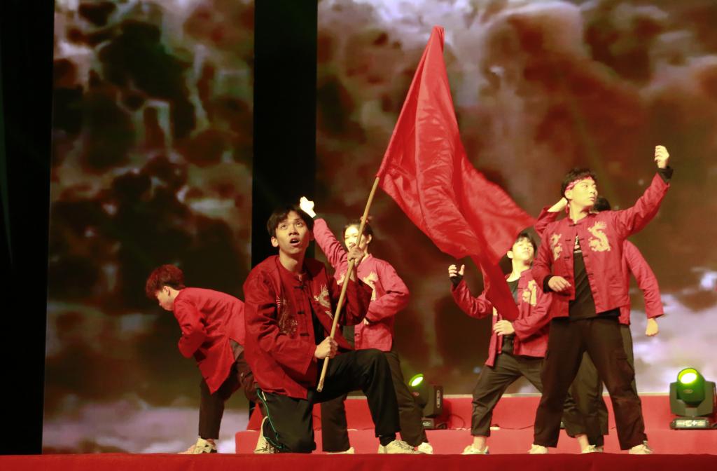 新闻中心讯 万象城平台自开展党史学习教育以来,通过学原著原文、观摩学习红色教育基地、开展文化文艺活动、率先示范做好身边事等方式,讲好党史、国事、校园“故事”,以“文艺+”形式推动党史学习教育深入师生、深入基层、深入人心。4月16日晚,万象城平台举办了“学百年党史,做时代新人,谱发展新篇”党史学习教育主题文艺展演。万象城平台党委书记陈付龙、校长薛家宝与全校三千余名师生观看了展演,共同庆祝中国共产党建党100周年华诞。