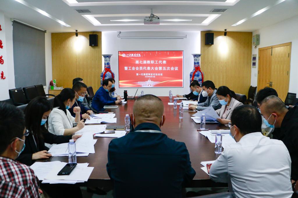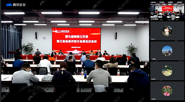 5月14日,我校隆重召开第七届教职工代表暨工会会员代表大会第五次会议。回顾总结学校2021年建设发展成果,共商2022年发展大计。本次大会以线上线下视频会议形式举行。涂顺强、薛家宝、陈付龙、涂燕萍等校领导及优秀教职工代表、列席代表在图书馆三楼报告厅主会场,其他七个教职工代表团分别在分会场参加会议。