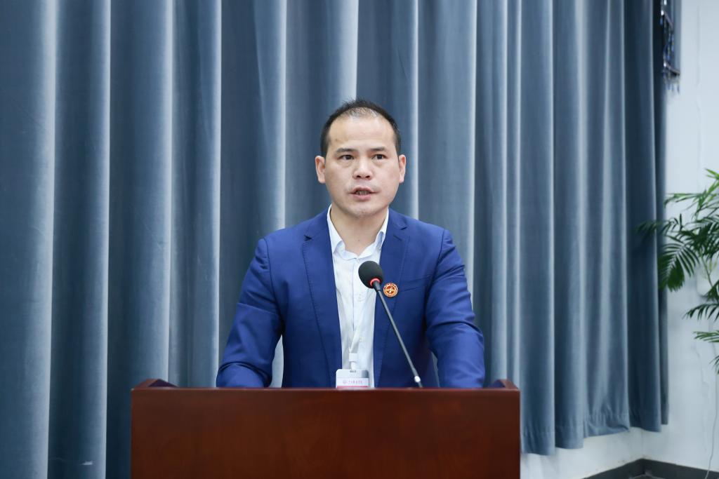 理事长涂顺强为大会致辞,代表学校理事会对大会的顺利召开表示热烈祝贺,向为学校建设与发展做出积极贡献的全体代表、教职员工表示衷心的感谢和由衷的敬意。他指出,2021年,是极不平凡的一年。学校不仅在教育教学、学科建设、科学研究等方面取得显著成绩,还成功举办了建校30周年庆祝活动,被省教育厅确定为“十四五”硕士学位授予立项建设单位。这些都是30多年来江服人不断拼搏奋斗的结果。涂顺强强调,2022年是《民办教育促进法》实施的关键年,我们要日争朝夕,以“强内涵、上层次、入一流”“三步走”战略为指引,以学科建设为龙头,以师资队伍建设为核心,以深度产教融合为驱动,全面提升学校的教育教学质量,高品质地建设好学校。他希望全校教职员工凝心聚力,同心同德,真抓实干,积极进取,发扬孺子牛、拓荒牛、老黄牛的精神,为学校的建设与发展贡献自己的一份智慧和力量,为把我校建设成为“特色鲜明的高水平应用型大学”作出自己应有的贡献。