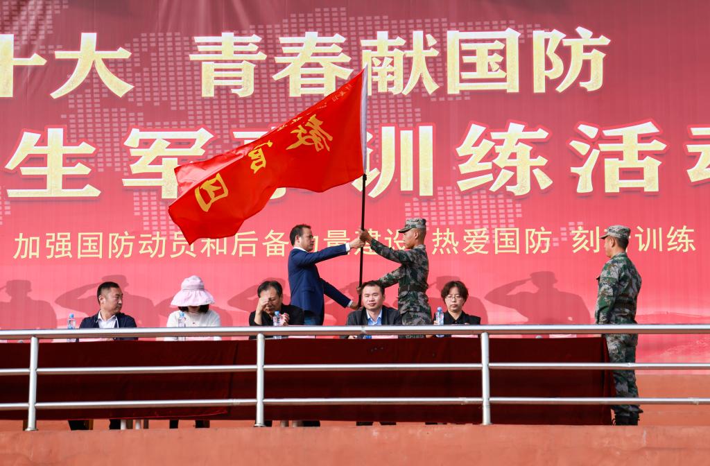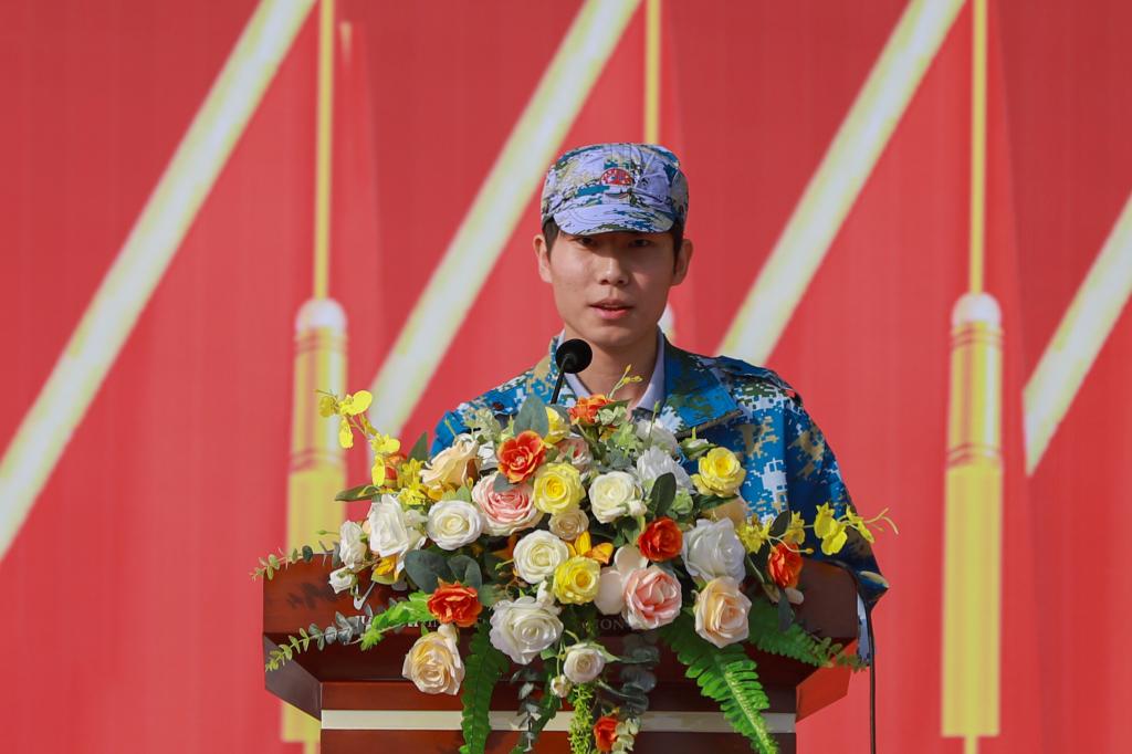 服装设计学院22级服设本科2班王浩宇同学代表全体受训新生发言,号召全体2022级新生坚定意志、展现青年志气,挑战自我、锻造青年骨气,心怀感恩、传承青年大爱,服从命令,听从指挥,积极学习,刻苦训练,以昂扬的斗志投入到军训中。