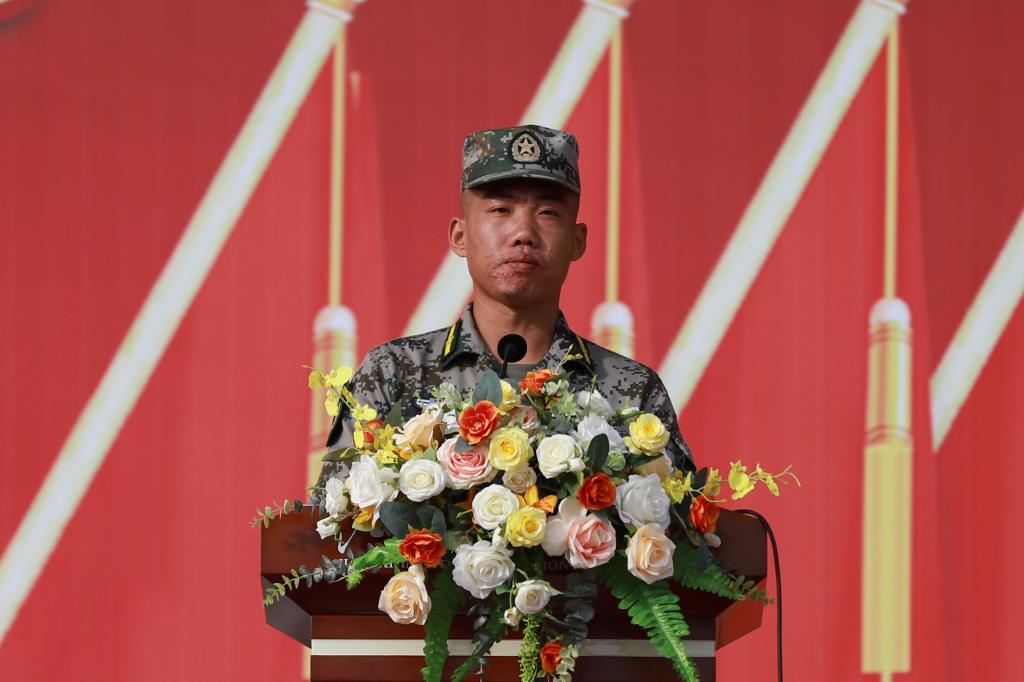教官代表宁磊代表全体教官承诺,一切从“我”做起,以良好的军人形象和过硬的军事能力带领新生同学们,提高政治思想觉悟,培养吃苦耐劳精神,增强军事理论能力。