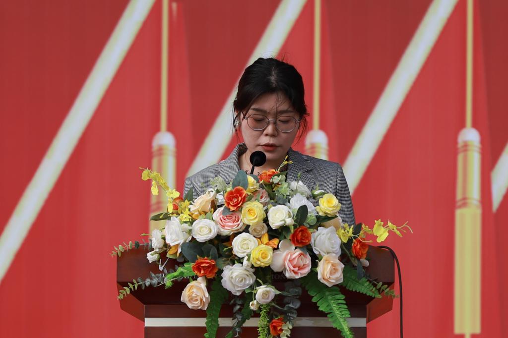 艺术设计学院雒梦琦老师代表全体辅导员发言,希望全体新生通过军训提高政治觉悟,激发爱国热情,发扬革命英雄主义精神,培养集体主义精神,增强国防观念和组织纪律,养成良好的学风和工作作风。她也郑重承诺一定不辜负学校、家长、同学们的期望和信任,积极配合学校和教官,真诚服务于同学们,用实际行动助力此次军训圆满结束!