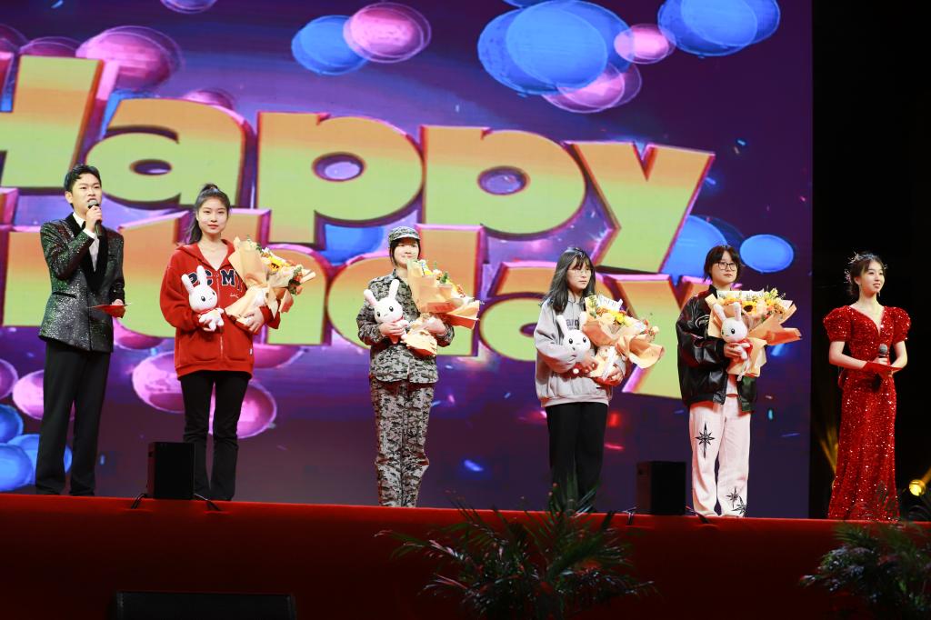 晚会还为4名新同学送去生日祝福,晚会温馨气氛持续升温。