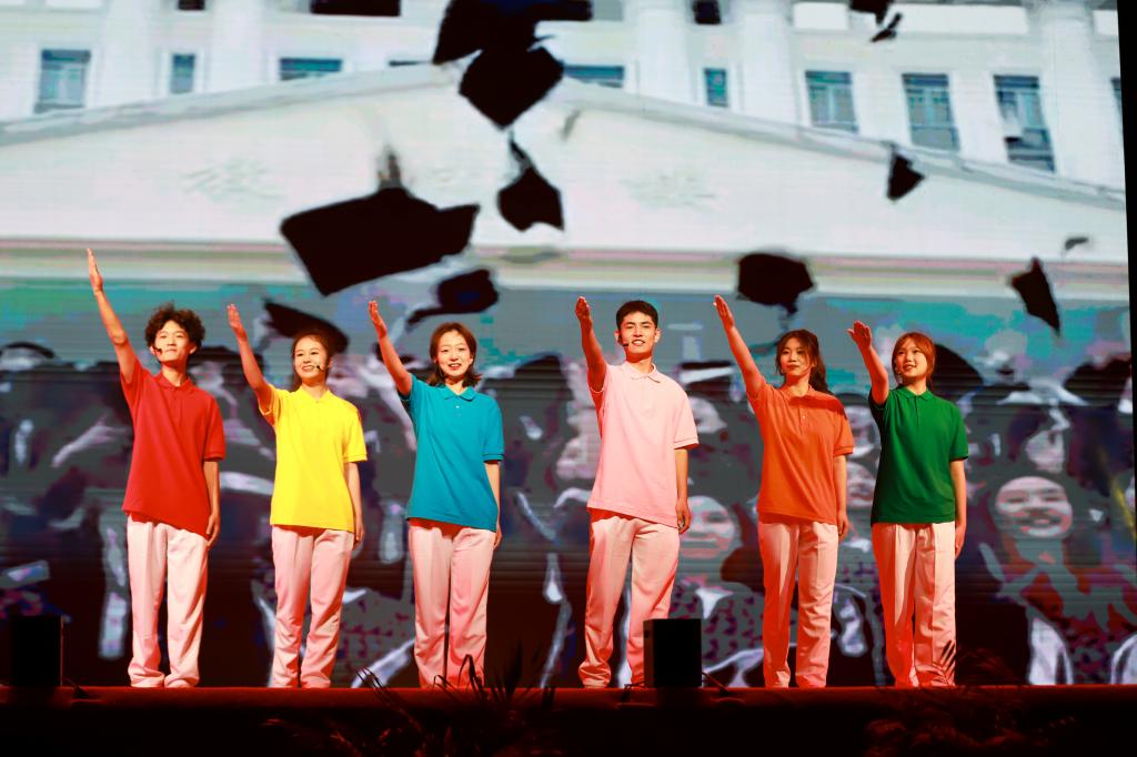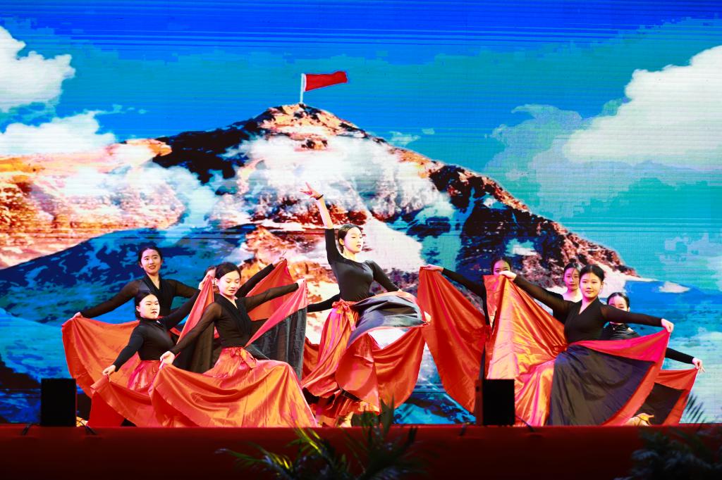 本次汇演分为“赓续百年青春志” “踔厉奋发新时代” “笃行不怠向未来”三个篇章。晚会节目精彩纷呈,有揭开历史厚重篇章的朗诵,热血潇洒、自带夺目高光的劲舞,古色古韵的霓裳羽衣舞,绘声绘色的语言小品……晚会现场汇聚成了一片欢乐的海洋,观众大饱眼福。