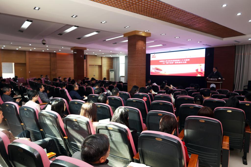 党委副书记唐新强以“全面深入学习宣传贯彻党的二十大精神--从‘四个自信’汲取前行力量”为题作专题宣讲,从“为什么要提出‘四个自信’”“怎样做到坚定‘四个自信’”两个维度为大家进行专题解读,更加坚定了我校广大党员干部坚持中国特色社会主义道路自信、理论自信、制度自信、文化自信。通过借助丰富的史料和中西方社会制度的对比,生动诠释了中国共产党人“为中国人民谋幸福,为中华民族谋复兴”的初心和使命,以及为之不断奋斗的光辉历程。